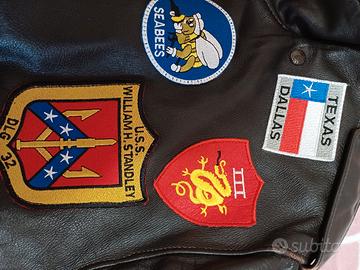 Le toppe in stile Top Gun di ottima qualità tutte ricamate, son state acquistate apparte e fatte cucire da artigiano della pelle, pertanto capo quasi unico nel suo genere.