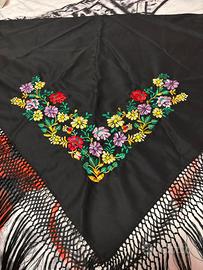 Sciale tradizionale sardo con ricami floreali fatti a mano.