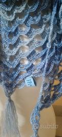 scialle backtus realizzato all' uncinetto filato mohair colore navy sfumato rigorosamente fatto a mano lunghezza 140 cm circa