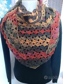 scialle baktus realizzato all'uncinetto con lana sfumata nuovo mai usato