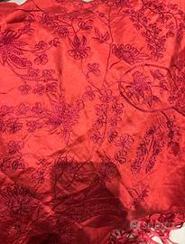Scialle di seta rosso ricamato di Etro 100% seta Misure 130cmx130cm