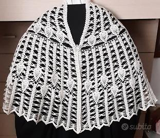 Scialle elegante da me realizzato a mano all'uncinetto, in cotone ecrù come da foto allegate.