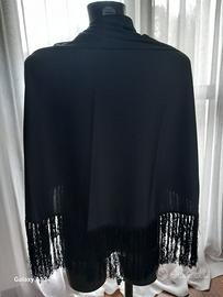 Scialle in maglia di seta, frange annodate, mai indossato.