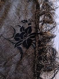 delicato ed elegante scialle in pizzo e filo dorato 130 per H 75