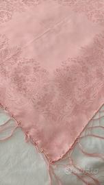 scialletto in seta rosa con fantasia floreale tono su tono, misure 64x64cm. nuovo e adatto per il costume sardo