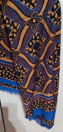Scialle sportivo con disegni geometrici; colori di base blu e senape. - Dimensione: 132 x 132 cm Non è presente l'etichetta dei materiali.
