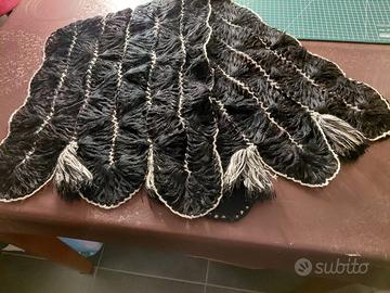 Scialle 2 Scialle elegante fatto a mano negli anni 65/70 con uncinetto ed altro attrezzo da ricamo, è stato usato filo nero, bianco ed argentato, la misura è di cm. 108x35 indossato solo per occasioni sporadiche. Prezzo: €. 15