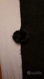 Vendo nuovo mai usato elegante sciallo nero in morbida viscosa, largo cm 135, lungo cm 175, con intercalati sul bordo esterno 20 pompon di pelliccia di coniglio diam 4. Non spedisco