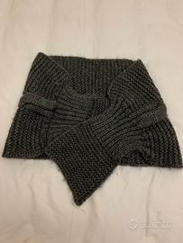 Scialle che si puó indossare sopra giacche, cappotti e piumini senza timore di perderlo in quanto è strutturato in modo che si possa inserire un lembo dentro uno scomparto ed in questo modo lo scialle si “chiude”. Indossato solo un paio di volte, ottime condizioni.