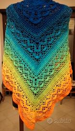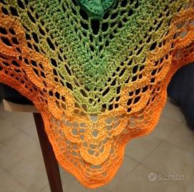 Scialle puro cotone crochet fatto a mano da me , pezzo unico, nuovo, multiuso, pareo, gonna, scialle tradizionale, misure lunghezza massima 2 metri, lunghezza alla punta dello scialle 93 cm. Moda 2025. Se vuoi in capo unico è per te. Esclusi perditempo. Consegna in tutta Italia con poste italiane. No contrassegno.