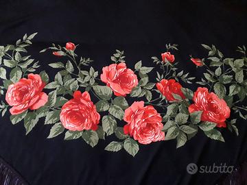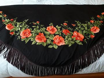 Scialle originale spagnolo, tessuto viscosa, apertura alare 142 cm