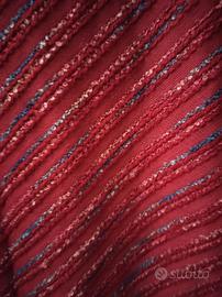 Ampio scialle vintage anni 80 stile gipsy con lunghe frange larghezza cm 84 lunghezza punta con frange cm 100 di un bellissimo colore mattone con strisce trasversali multicolori
