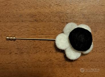 Sciarpa ad anello in morbido filato bianco con un piccolo bottone nero.