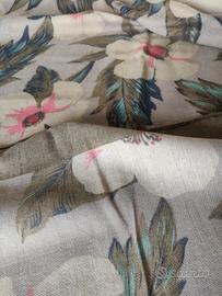 Stola / sciarpa leggera con fantasia floreale su base beige chiaro, impreziosita da fiori grandi con dettagli rosa e foglie blu/verde.