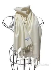 sciarpa bianca in caldo tessuto biellese pura lana superfine disponibile in vari colori,dimensioni cm.170x37,fornita con confezione