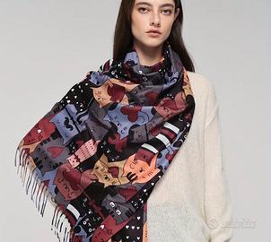 Leggera ma calda, con un motivo di simpatici micetti, aggiunge un tocco di allegria e originalità a qualsiasi outfit. Ideale per le giornate fredde o per completare un look casual e chic. ☕🐈⬛