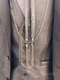 Accessorio per cosplay Crowley di Good Omens, comprende sciarpina sottile in lurex con Nappe color nero come l'originale e catena in acciaio inox.