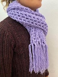 Salve, vendo sciarpa di lana di colore lilla, interamente fatta a mano, disponibile di diverse taglie e diversi colori su richiesta, non esitate a contattarmi per tutte le informazioni, realizzo anche tappetini, coperte, cappelli, copri pouf e qualsiasi cosa di cui avete bisogno, effettuo Spedizioni in tutta Italia 🎁📦
