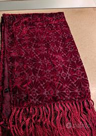 Sciarpa donna leggera con disegni floreali di velluto in rilievo e frange. Lunga 166 cm. 100% seta