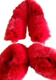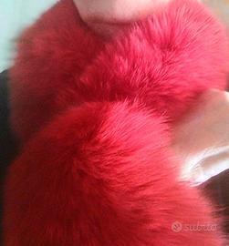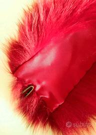 Vera volpe rosso ciliegia per questa sciarpa scaldacollo insolita con polsini abbinati, morbidissima sulla pelle e foderata in seta. Non è necessario fissarla, si può indossare su ogni capo, mentre i polsini devono essere fissati con un paio di punti o una spilla dall' interno.