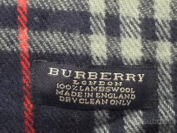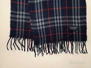 Sciarpa elegante Unixes iconica Burberry Stampata tartan colore predominante blue marino con righe rosso e bianco Realizzata in pura lana vergine