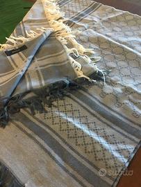 Splendida sciarpa Gucci stampa guccissima di colore azzurro polvere tendente al grigio. In puro cotone 100%.