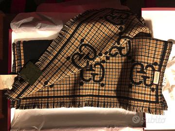 Sciarpa Uomo Lana Gucci GG reversibile Nuova con Scatola +BORSA PORTATORE