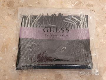 Sciarpa Guess by Marciano, in pura lana. Nuova. Color grigio con bordo viola. Dotata della confezione originale