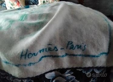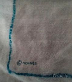 Vendo meraviglioso shawl Hermès 140 cm originale, in seta (35%) e cashmere (65%), con il celebre motivo equestre con cavalli.