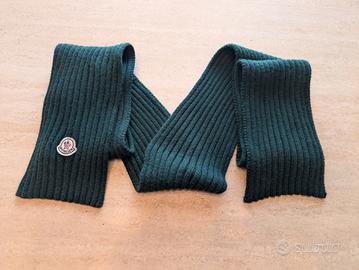 Vendo elegante sciarpa Moncler in maglia a coste, colore verde scuro (quasi foresta).