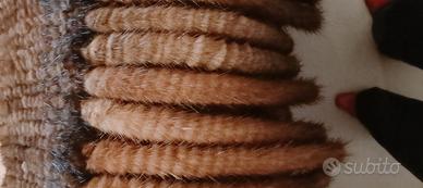 Sciarpa in visone tricoté/uncinetto con lavorazione speciale tipo sfilettata sulle frange. Oggetto in perfette condizioni come nuovo. Indossato in poche occasioni. Può essere indossato a sciarpa su un cappotto in modo sportivo o stola su un abito in modo più elegante.