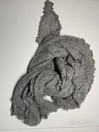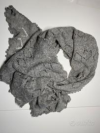 Sciarpa grigia con motivo a rombi traforati.