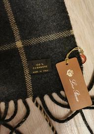 Sciarpa Loro Piana. 100% cashmere. Made in italy. Nuova. Grigio antracite, con inserti arancione,giallo e verde. Dimensioni 170cm x 55cm. Frange all'estremità.