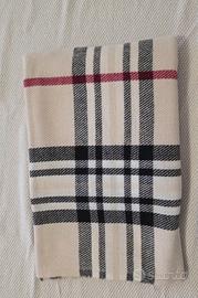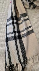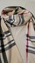 Sciarpa morbida a quadri beige con nappe in finta cashmere, antivento e caldo per uso esterno, adatto per l'autunno/inverno con abiti mai utilizzata.
