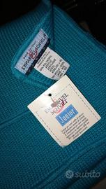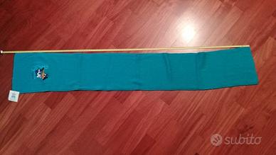 Sciarpa nuova marca "Emmanuel Schvili", colore azzurro, con disegno Daffy Duck 50% lana 50% acrilico - ancora con cartellino - di qualità e marca ottime - lunga cm 150, larga 25 cm