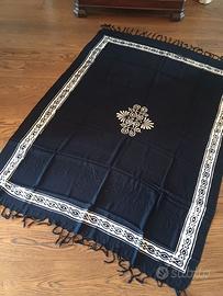 Sciarpa Pareo Greca Originale e Nuova. Mai usata. Nera con greca ai bordi e piccolo decoro al centro. 100% cotone, morbido e comodo, da utilizzare sia come sciarpa che come telo mare. Con impunture e cuciture perfette in ogni dettaglio. Di grandi dimensioni rettangolari: 155 cm di lunghezza per 115 cm di larghezza. Blu scuro con decori bianchi. Un tocco chic, per rendere unico qualsiasi tipo di outfit la accompagni. Elegante e raffinata. Un pezzo unico. Introvabile. Bellissima.