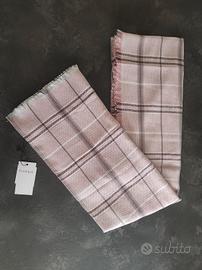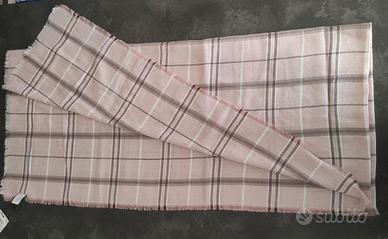 Fantasia a quadri, colore predominante rosa tenue e varie tonalità di marrone/beige.
