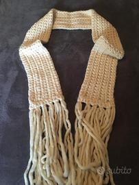 Sciarpa Patrizia Pepe color panna, pura lana, molto particolare e introvabile. E’ stata realizzata in edizione limitata. Lunghezza senza frange 220 cm, larghezza 17 cm.Perfetta per tutte le occasioni, utilizzabile come scialle. No perditempo. Condizioni ottime, nessun difetto.
