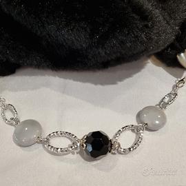 Sciarpa pellicciotto gioiello disponibile, nuova, con un bracciale staccabile fatto a mano e parti metalliche in nikel free. Si può usare in tanti modi, anche come coprispalle, pezzo unico. In viscosa al 100 % e organza, calda e bella anche come idea regalo.
