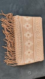 Sciarpa con un bellissimo motivo a lama e bordo con frange. Realizzata in morbido cashmere e lana di alpaca.