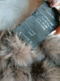 Elegante sciarpa Geospirit in pelliccia di coniglio tonalità tortora beige, perfetta per la stagione invernale.