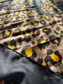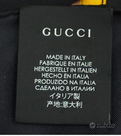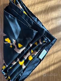 Seta Nera/Gialla/Marrone Usata 2volte. L'etichetta più grande nera non è più presente perché è stata staccata con cura.essendo questa fatta diversamente,di una stoffa molto dura mi irritava il collo. mentre quella bianca con il marchio è presente. Ottimo sia per il collo che come bandana. Utile anche per la moto.