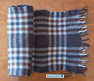 SCIARPA RINASCENTE. Modello unisex. In lana 100%. Dimensioni cm 120 x cm 25 senza le frange laterali. Colore marrone con righe marroni e bianche, nuova con cartellino. Euro 13.