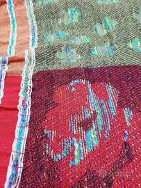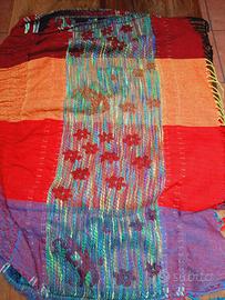 Il corpo centrale, a bande colorate, si allarga alle estremità dove è presente un inserto con motivi floreali.
