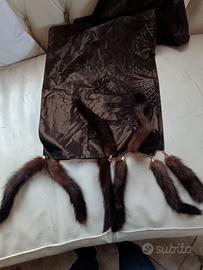 Vendo bellissima sciarpa o scialle . Tessuto taffetà con decori in vellutino e codine di visone.