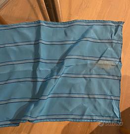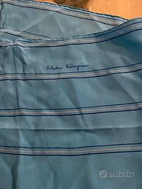 Sciarpa in seta Salvatore Ferragamo, vintage, colore turchese con righe bianche e blu, misure 88x26 cm, in buone condizioni ( segni di uso in foto )