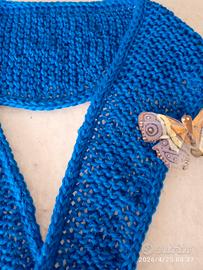 Sciarpa Sophie ispirata al modello PetiteKnit. Questa sciarpa, lavorata a mano, è un accessorio elegante e senza tempo, ispirato al celebre modello della sciarpa Sophie. Accessorio morbido, comodo e leggero, perfetto per l'uso quotidiano. La forma semplice e minimalista lo rende facile da abbinare. Questo pezzo è unico. ✨ Dettagli • Materiale: 90 lana merino e 10% acrilico - Colore: blu • Larghezza nel parte centrale circa 11,5 cm • Lunghezza: circa 120 cm • Fatto a mano con cura 🧡NUOVA Ideale per sé o come regalo. DISPONIBILITÀ IN ALTRI COLORI E MATERIALI #sciarpa #sciarpasophie #petitknit #lana #merinos #arancione #donna #idearegalo #handmade #petiteknit