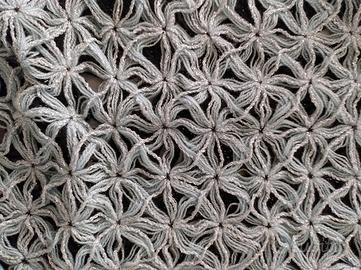 Bellissima ed originale sciarpa stola vintage anni 80 eseguita interamente a mano con un filato morbido e caldo con filo sottilissimo in lurex nei toni di nero grigio e argento con possibilità di metterla in entrambi i lati cm 125x42 mai usata, proveniente da una cessazione di attività