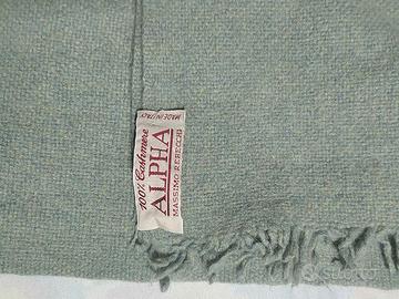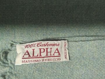 Sciarpa con frange, 100% cashmere, color verde acqua, presenti alcuni difetti vedi foto, etichetta un po' allentata. Marca Alpha, Massimo Rebecchi