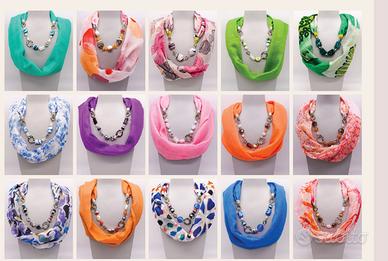 Un tocco di eleganza e versatilità per la bella stagione. la collezione Pastelya è composta da 15 sciarpe gioiello pensate per esaltare ogni outfit primaverile ed estivo. Realizzate in un mix leggero e confortevole di viscosa e poliestere, ogni modello è impreziosito da un elegante dettaglio gioiello con placcature argentate e dorate. Fornite di apposito shopper. Ritiro in sede o spedizione con corriere espresso da conteggiare. Prezzo Promo !! Vari colori !!